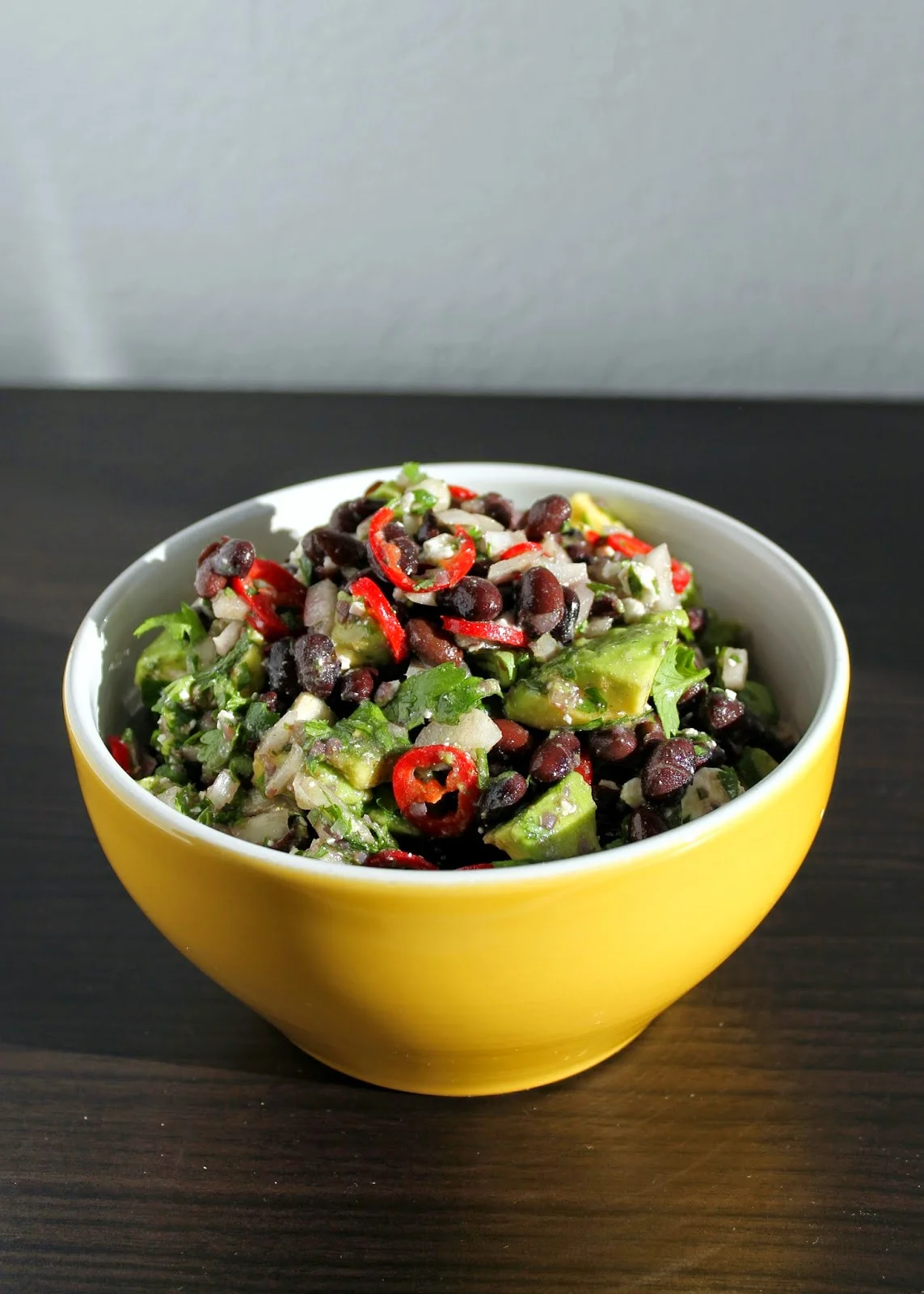 My husband declared this black bean salsa the best of three worlds. When we can't decide on guacamole, salsa, or black bean salad, we'll combine the three and have everything in one. This is the result and it's super tasty. And leftovers (if you have any) make the perfect lunch the next day; wrap up in a tortilla or flatbread, spoon over brown rice or quinoa, or eat as a black bean salad with spinach or kale.