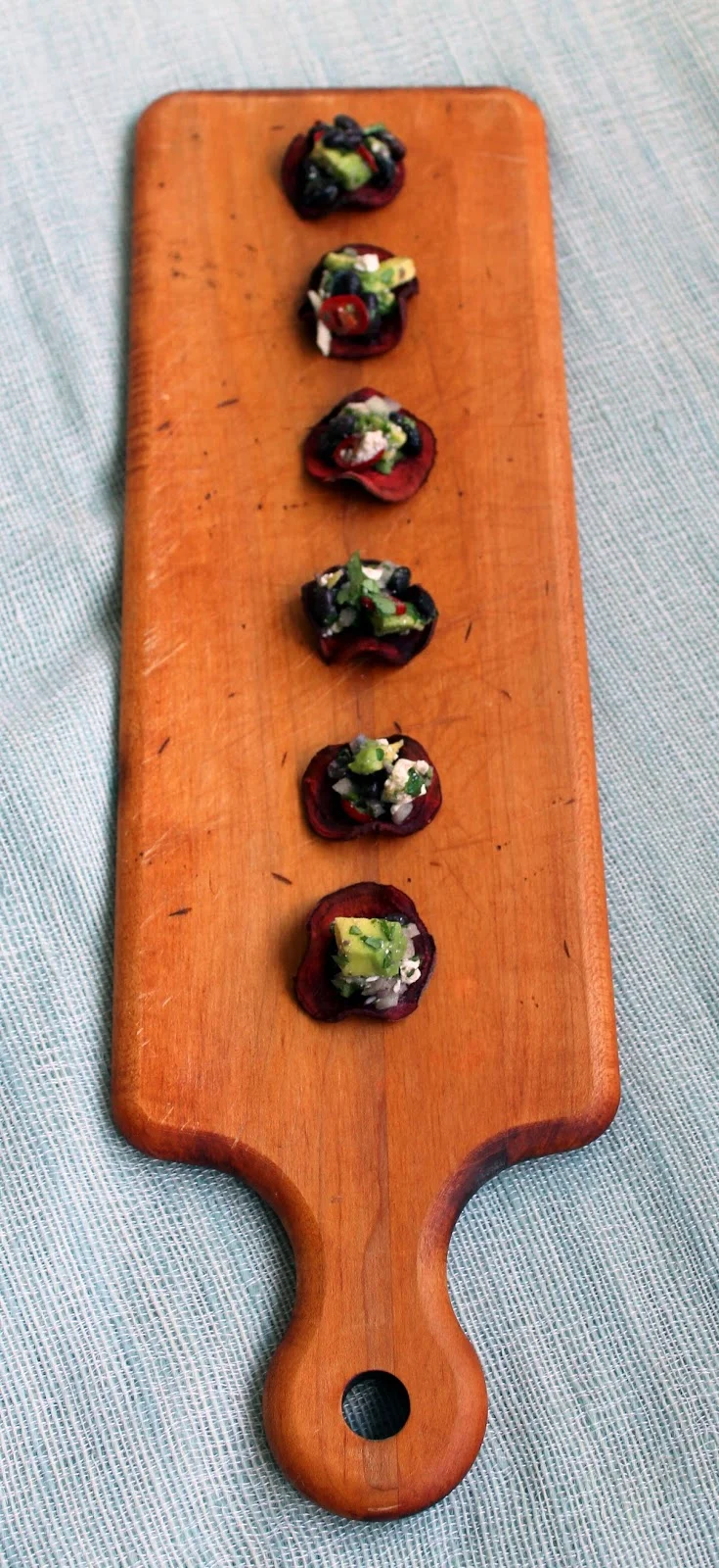 Notes: If you cannot find beets, use sweet potato chips instead.