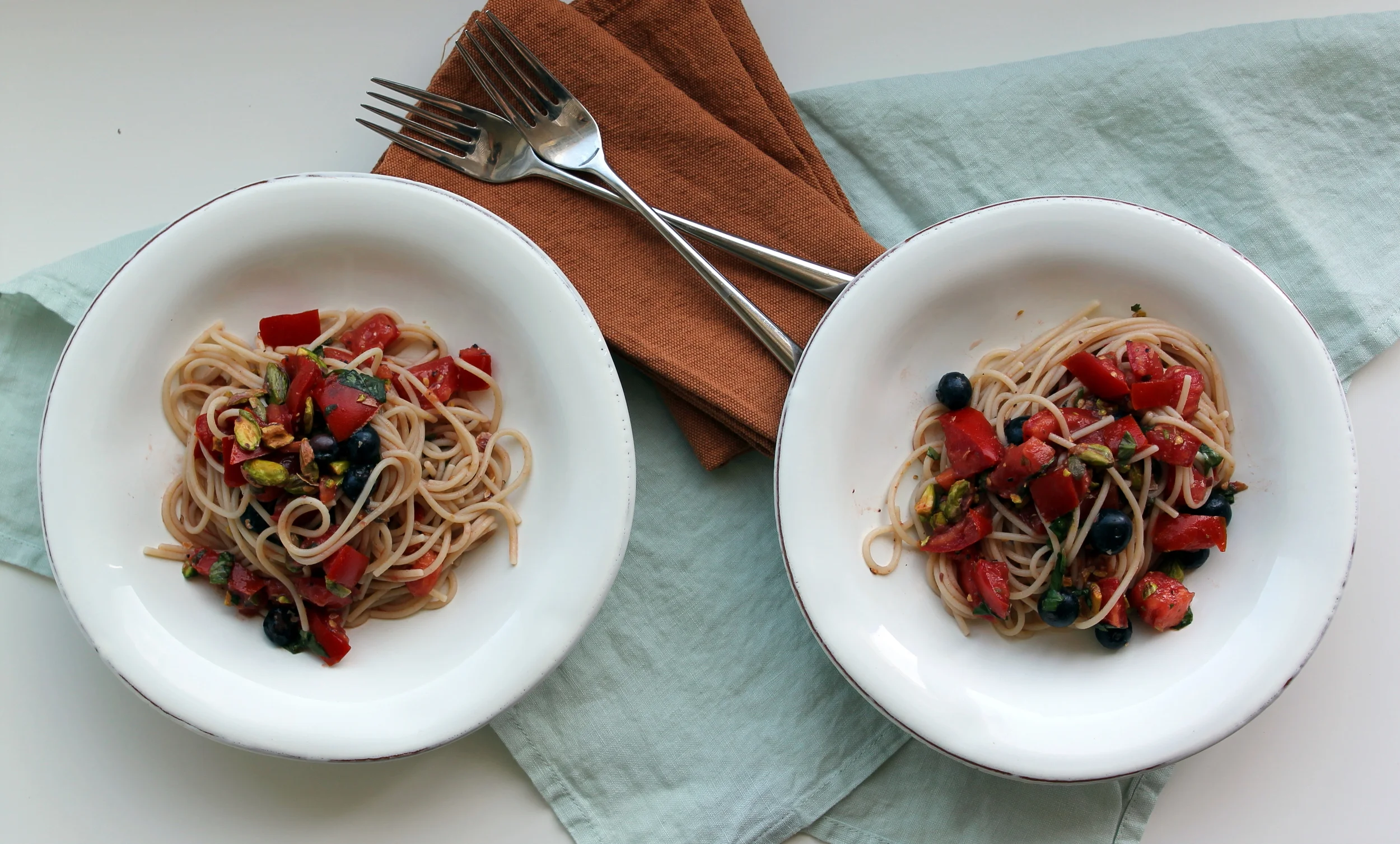 And yes, you are seeing blueberries in the bowl. To be honest I wasn't trying to be clever nor did I have pre-contemplated plans for this odd addition. I literally had a handful of blueberries leftover, not enough for a smoothie, barely enough to top granola, so I decided to throw them into the pasta. Why not?! Well, it stuck. I've included them in all iterations since and never looked back. Their pop of mild citrusy sweetness added another dimension, paired nicely with the oregano and basil, and generally kept things interesting. But if you're turned off by them, simply leave them out.