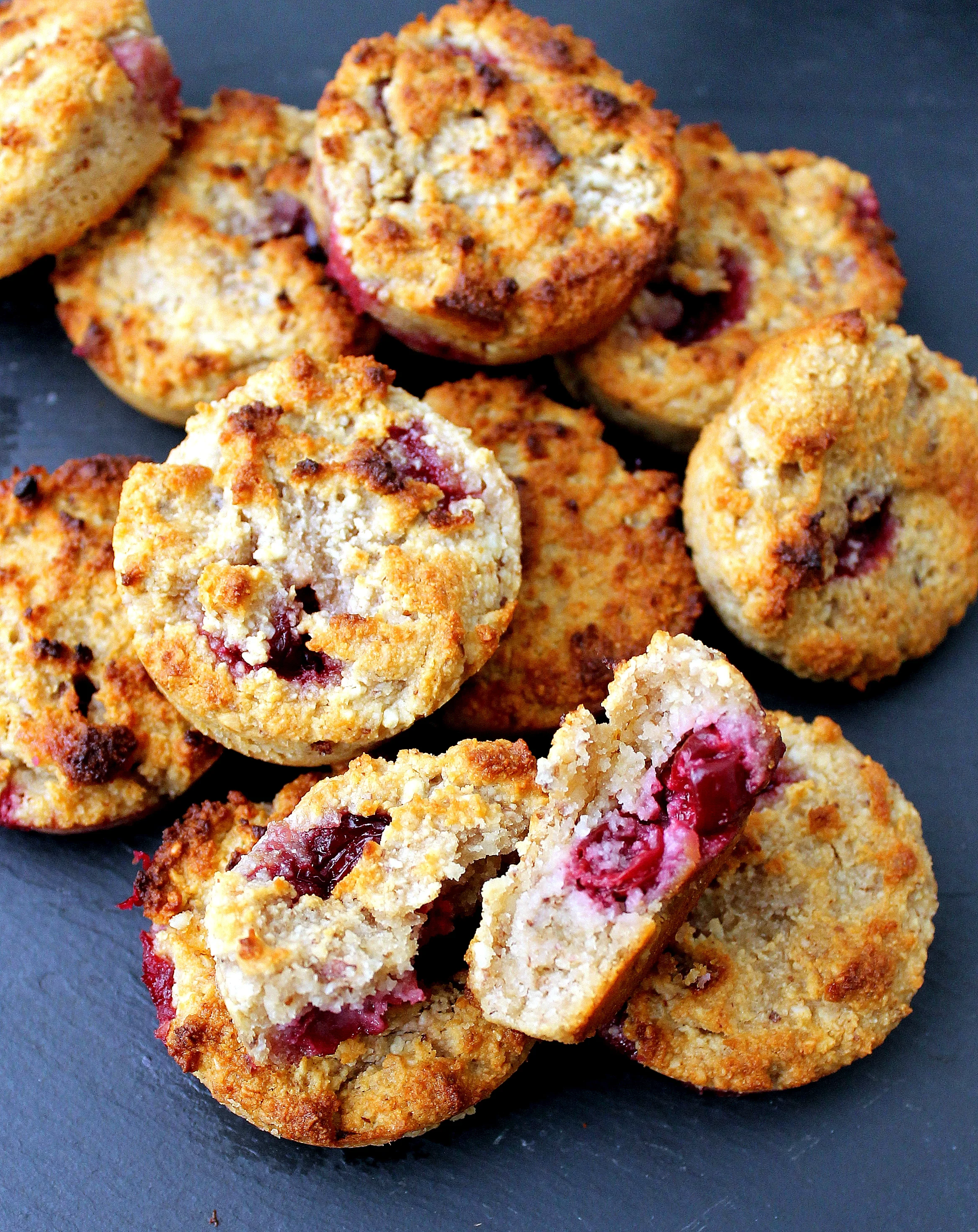 These cake bites are my new favorite snack to keep on hand during the week. With a base of almond and coconut flours, coconut oil, and applesauce, they bake up with an incredibly moist, almond-scented interior with pockets of tartness from the cherries. The coconut flour provides a cake-like density that leans towards fudgy - a texture you can't get from almond flour alone. So although the recipe doesn't call for much coconut flour, it serves an important role.